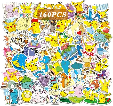 Amazon Com 160 Pcs Pokemon Stickers Cute Anime Pikachu Stickers Gift For Kids Teen Birthday Party Cool Waterproof Vinyl Decal For Water Bottle Luggage Phone Guitar Computer Bike Skateboard Kitchen Dining
